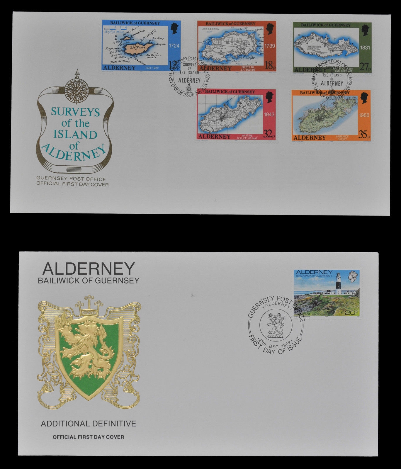 Alderney 1989 - Mi-Nr. 37-41 & 42 - Landkarten / Leuchtturm - 2 FDCs