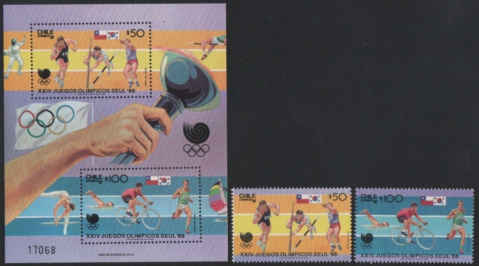 Chile 1988 - Mi-Nr. 1220-1221 & Block 7 ** - MNH - Olympia Seoul