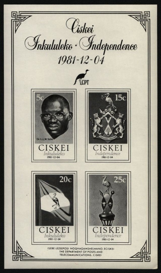Ciskei 1981 - Mi-Nr. 1-4 ** - MNH - Schwarzdruck - Unabhängigkeit