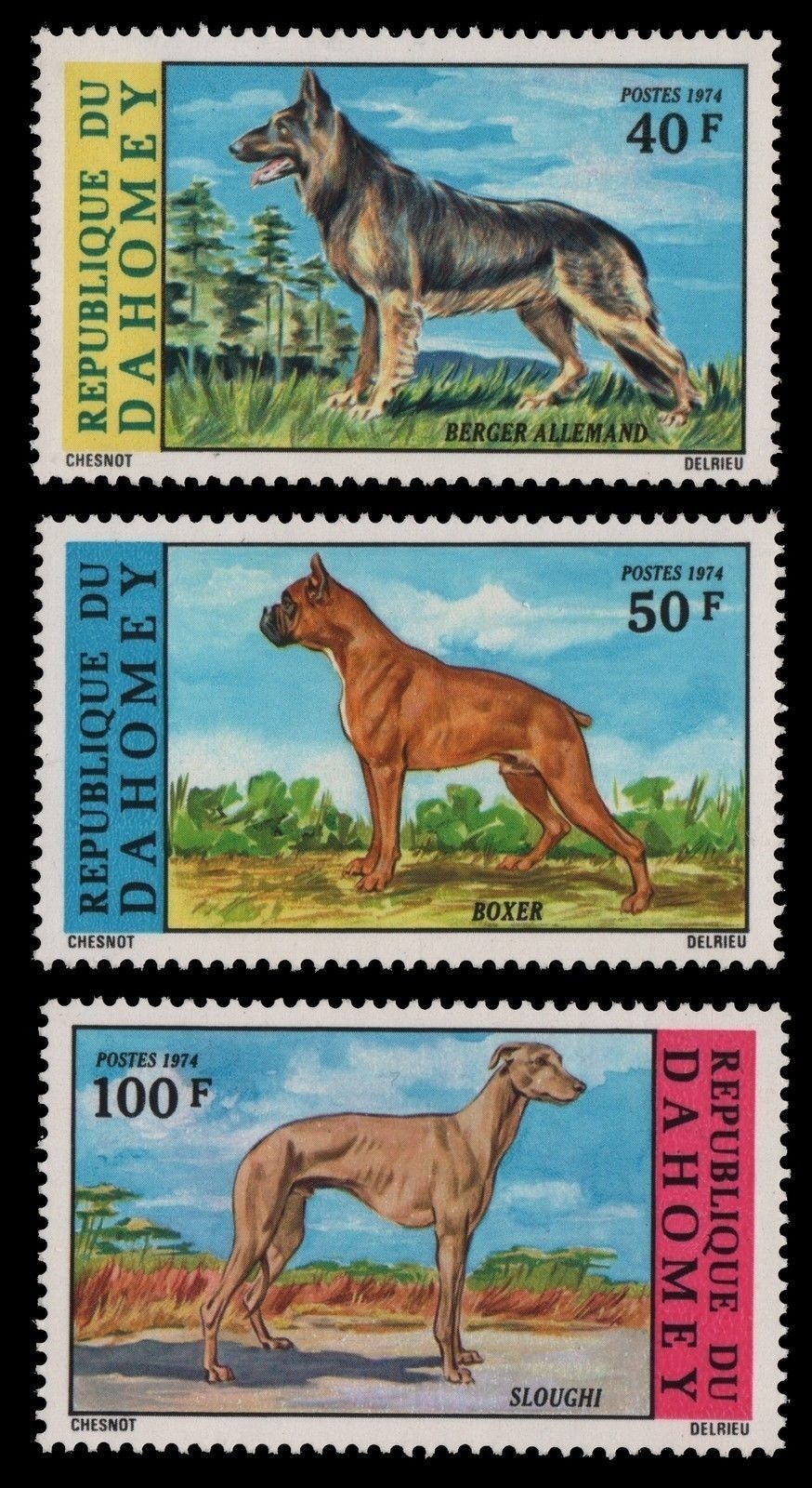 Dahomey 1974 - Mi-Nr. 554-556 ** - MNH - Hunde / Dogs
