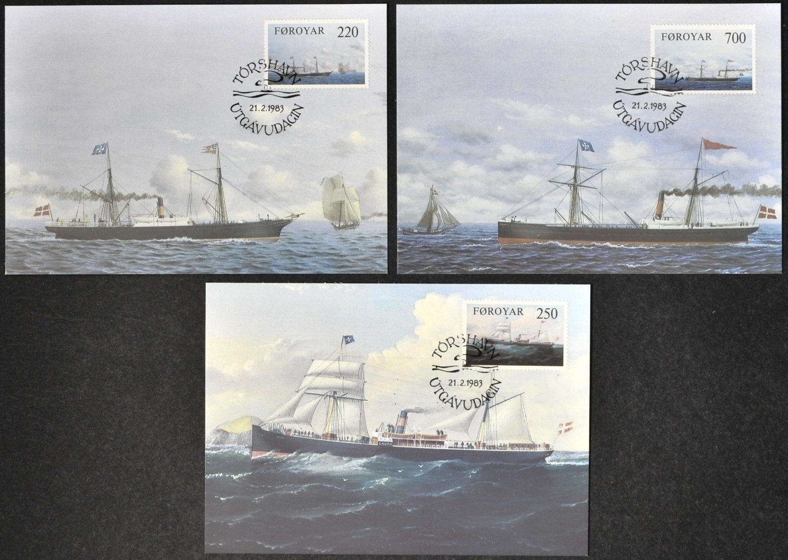 Färöer 1983 - Mi-Nr. 79-81 - Schiffe / Ships - 3 Maxikarten