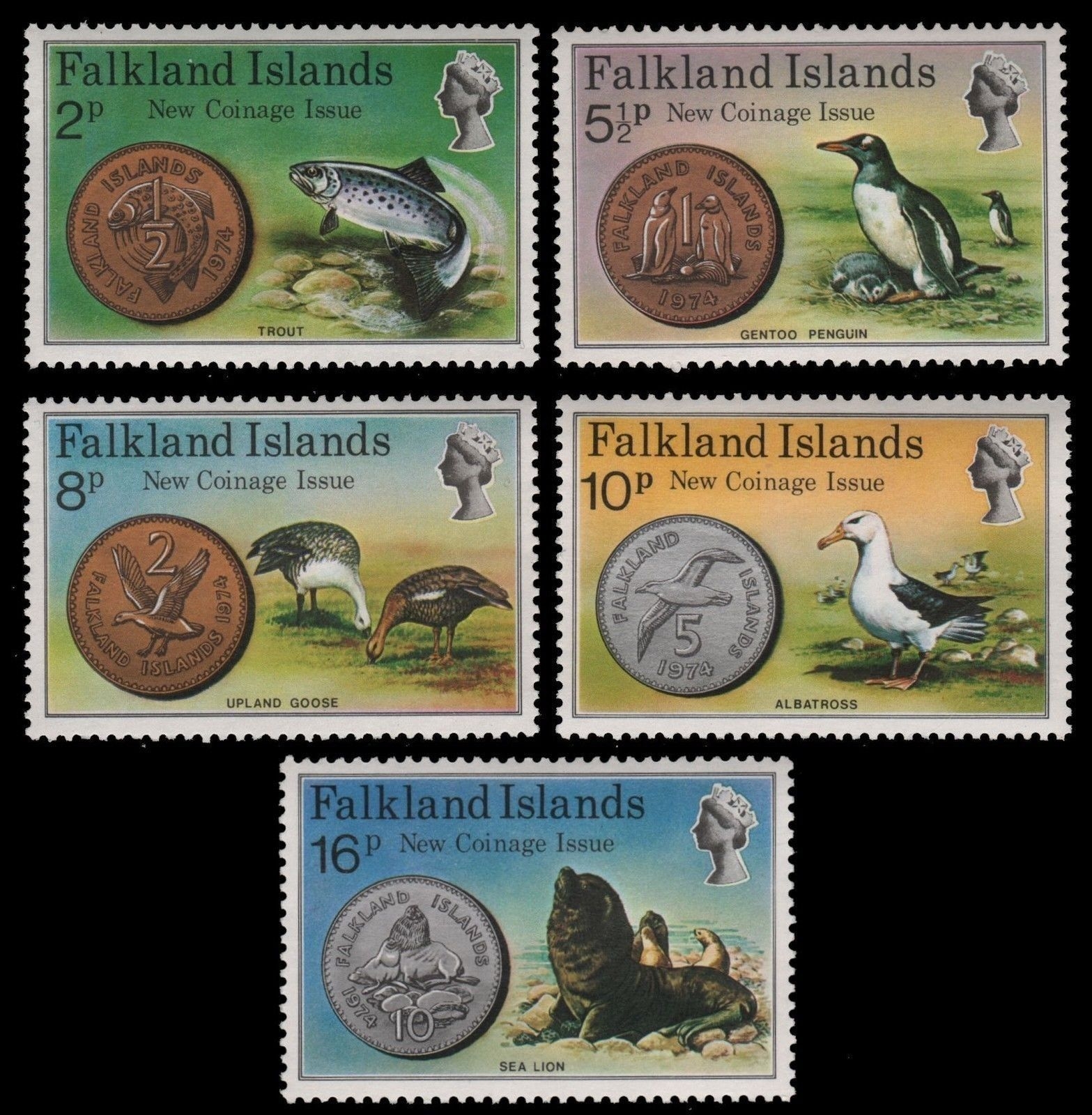 Falkland 1975 - Mi-Nr. 240-244 ** - MNH - Münzen - Tiere / Animals