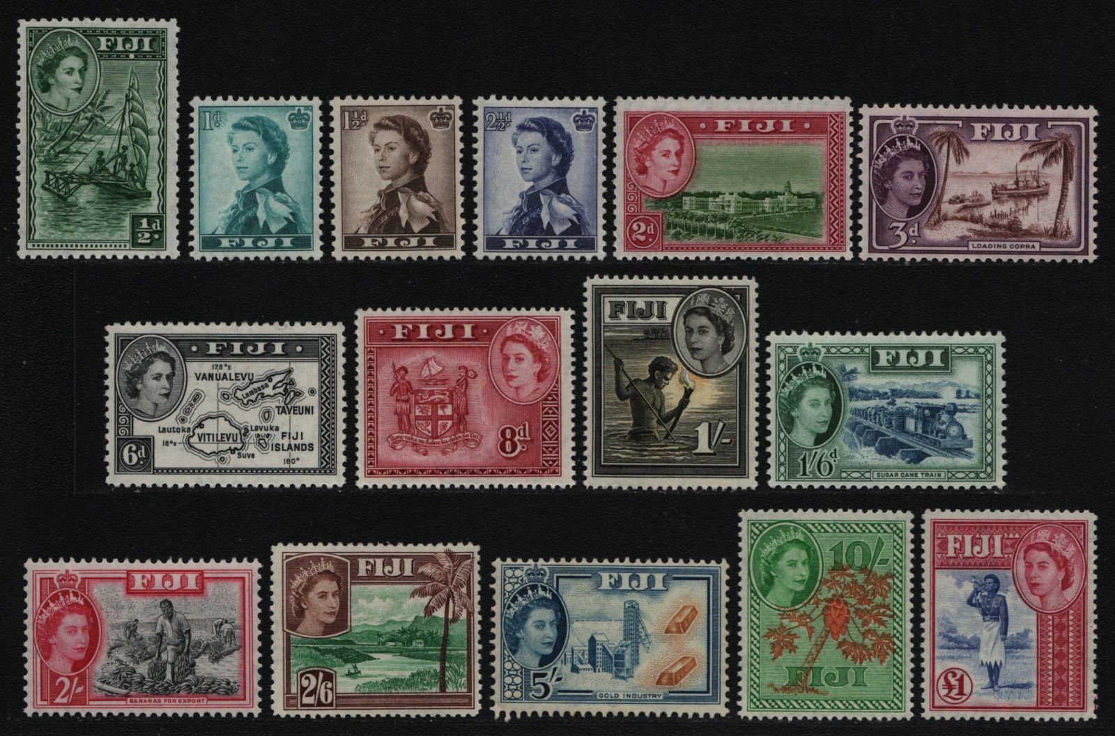 Fidschi 1954 - Mi-Nr. 124-138 ** - MNH - Queen Elizabeth II