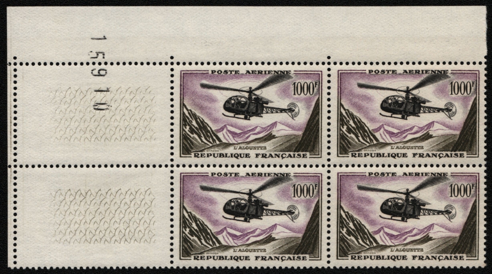 Frankreich 1958 - Mi-Nr. 1177 ** - MNH - Viererblock - Hubschrauber / Helicopter