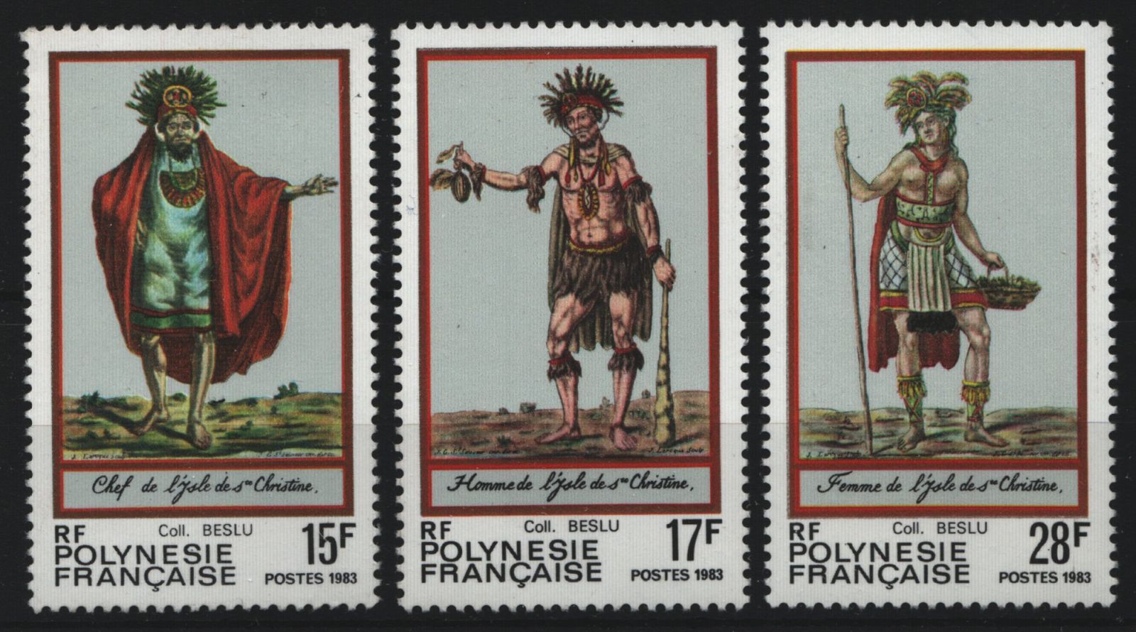 Franz. Polynesien 1983 - Mi-Nr. 381-383 ** - MNH - Trachten / Costumes