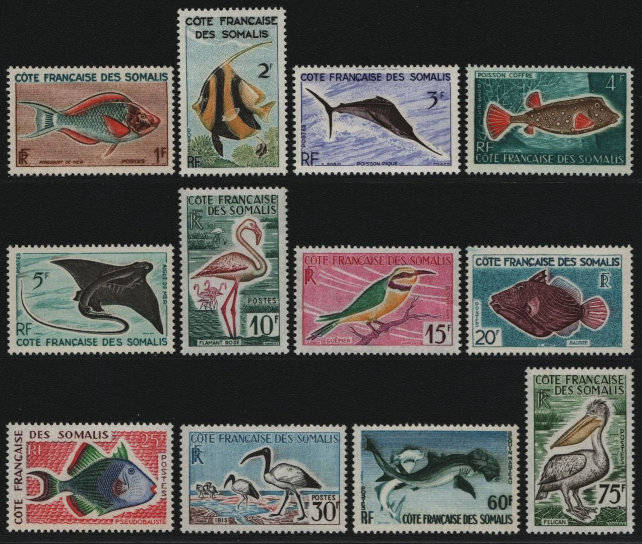 Französische Somaliküste 1959 - Mi-Nr. 320-331 ** - MNH - Fische & Vögel