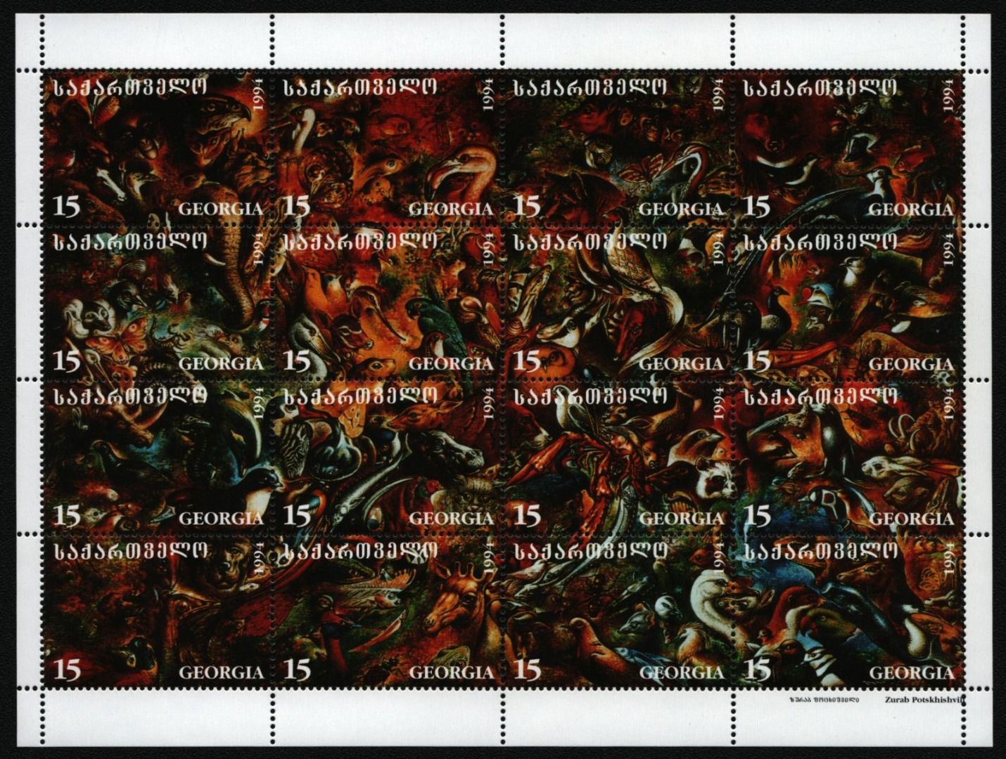 Georgien 1995 - Mi-Nr. 125-140 ** - MNH - ZDR-Bogen - Wildtiere / Wild animals