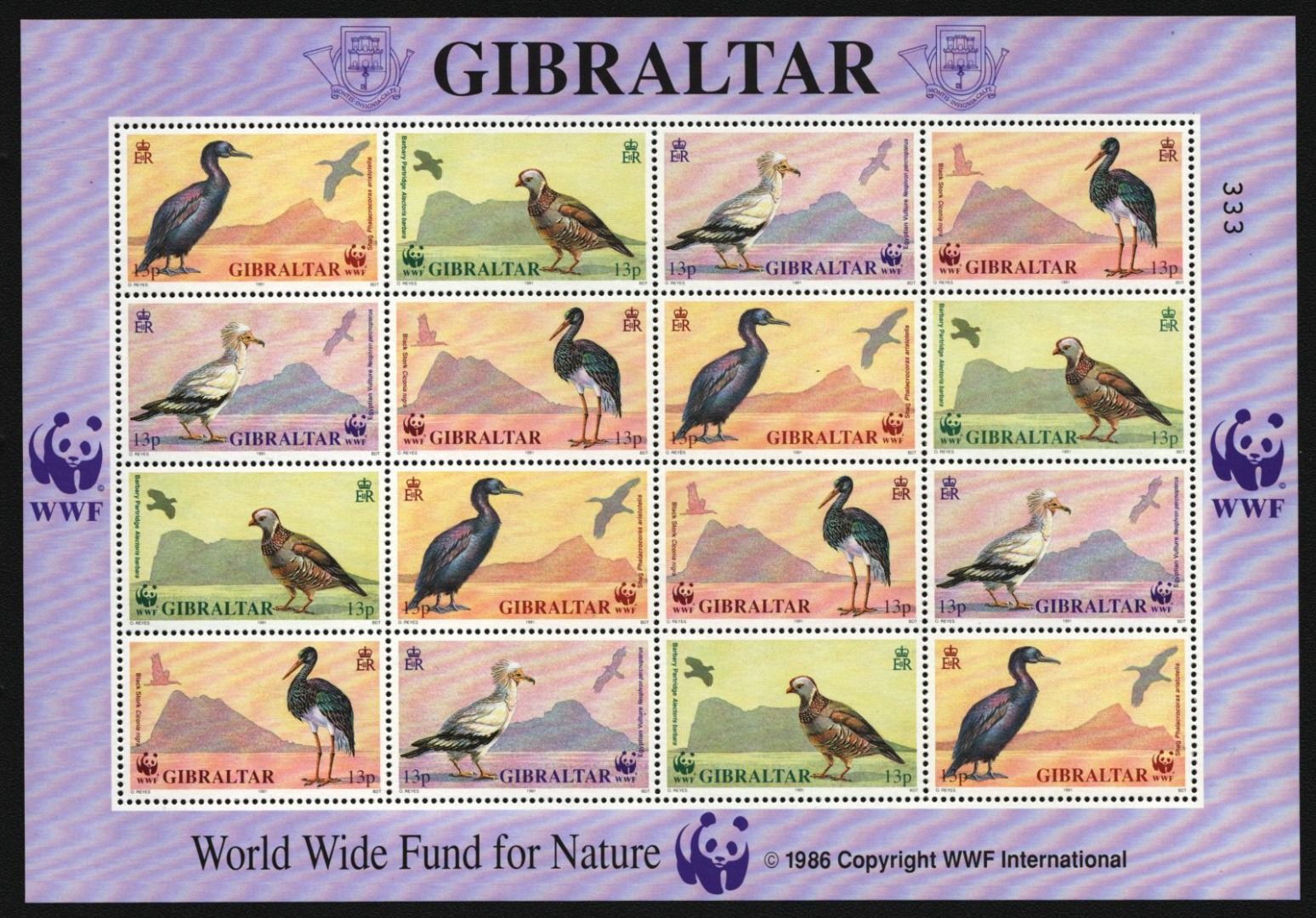 Gibraltar 1991 - Mi-Nr. 619-622 ** - MNH - ZDR-Bogen - Vögel / Birds