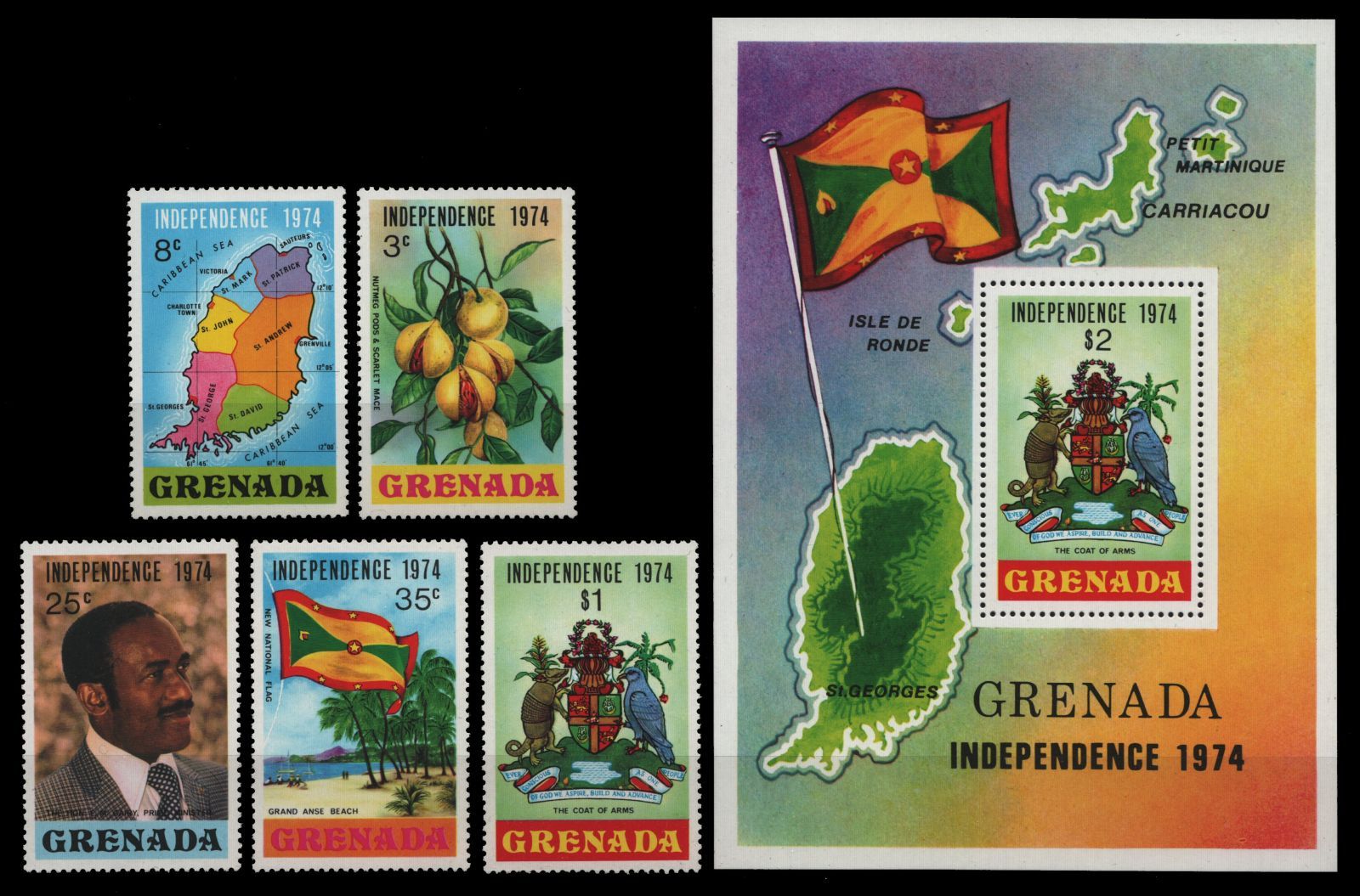 Grenada 1974 - Mi-Nr. 583-587 & Block 35 ** - MNH - Unabhängigkeit