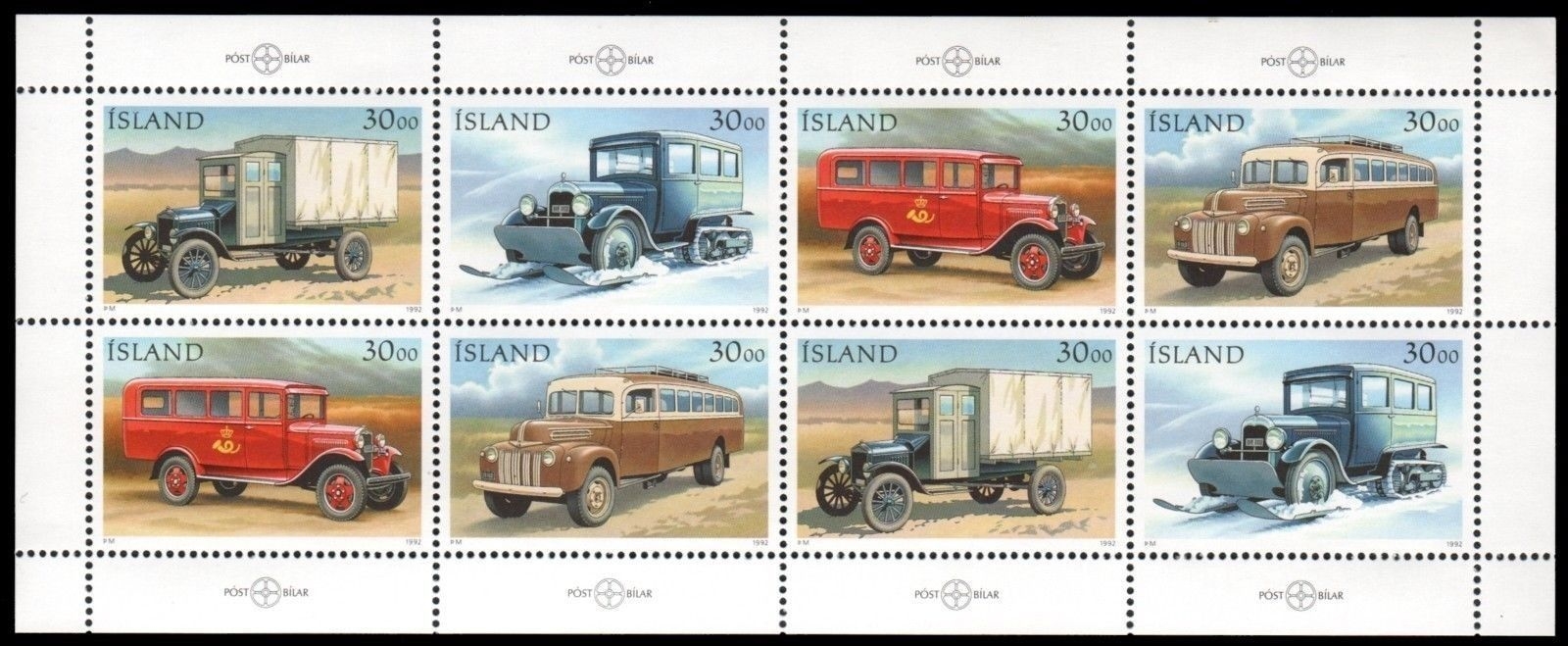 Island 1992 - Mi-Nr. 770-773 ** - MNH - Kleinbogen - Autos / Cars