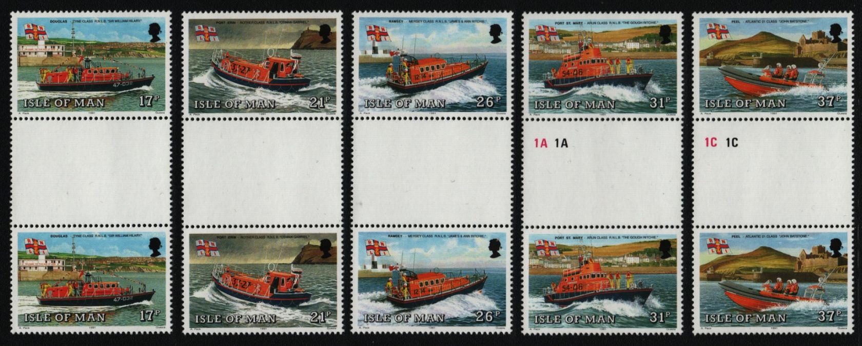 Isle of Man 1991 - Mi-Nr. 459-463 ** - MNH - Stegpaare - Rettungsboote