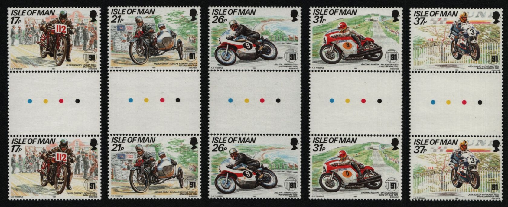 Isle of Man 1991 - Mi-Nr. 468-472 ** - MNH - Stegpaare - Motorräder / Motorbikes