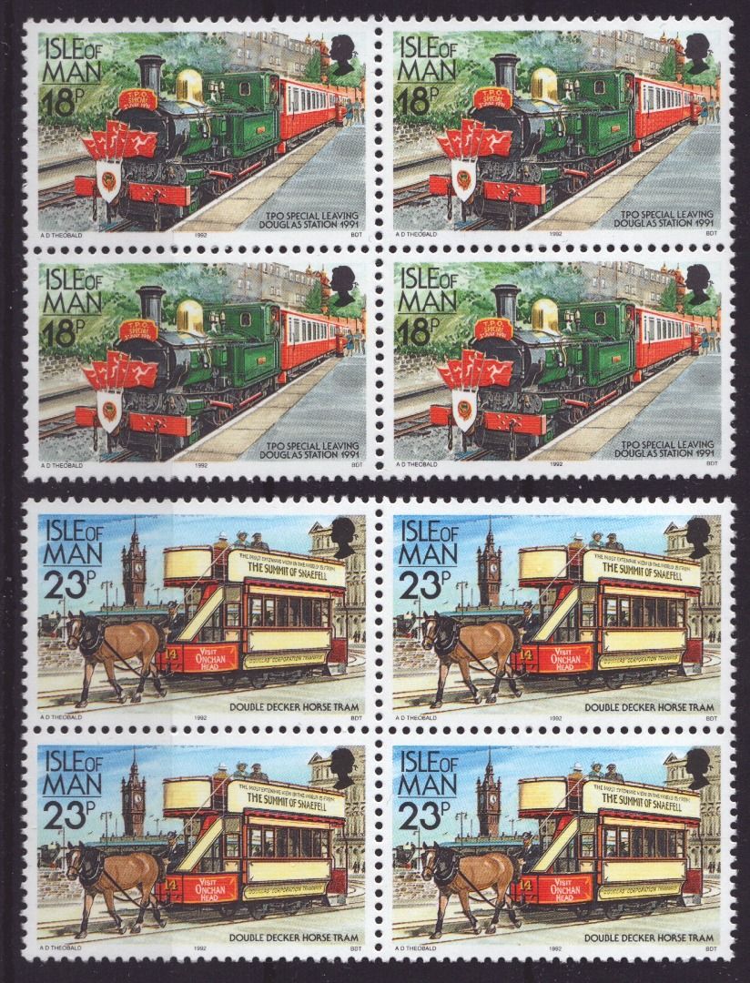 Isle of Man 1992 - Mi-Nr. 490-491 ** - MNH - Viererblock - Transportmittel