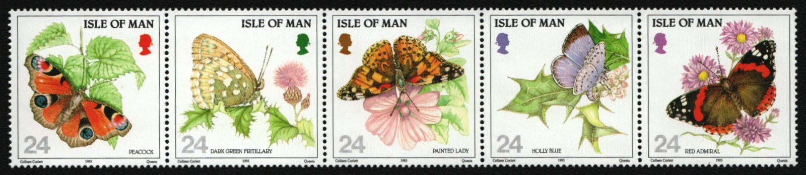 Isle of Man 1993 - Mi-Nr. 555-559 ** - MNH - Streifen - Schmetterlinge (II)