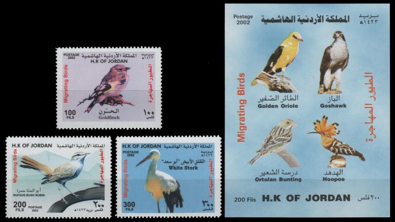 Jordanien 2002 - Mi-Nr. 1804-1806 & Block 100 ** - MNH - Vögel / Birds