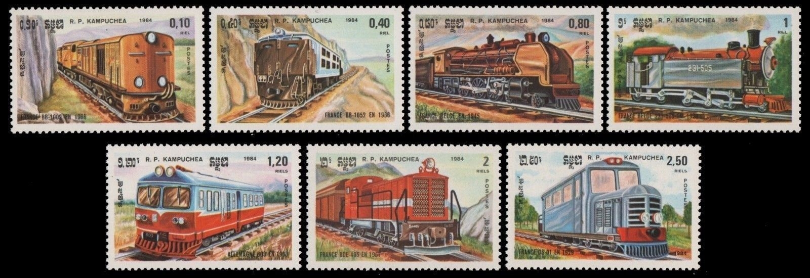 Kambodscha 1984 - Mi-Nr. 584-590 ** - MNH - Lokomotiven / Locomotives