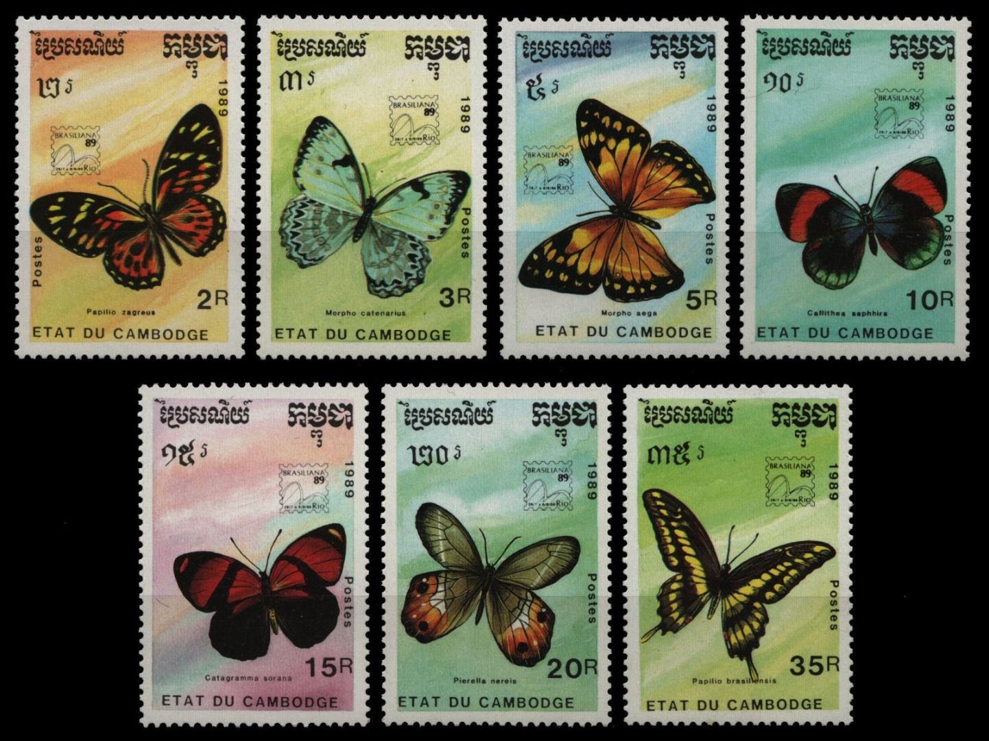 Kambodscha 1989 - Mi-Nr. 1075-1081 ** - MNH - Schmetterlinge / Butterflies