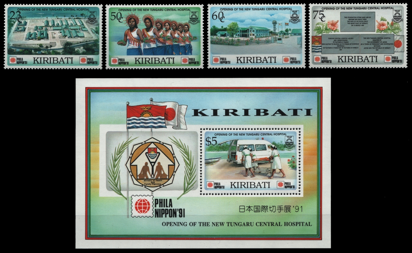 Kiribati 1991 - Mi-Nr. 573-576 & Block 19 ** - MNH - Neues Krankenhaus