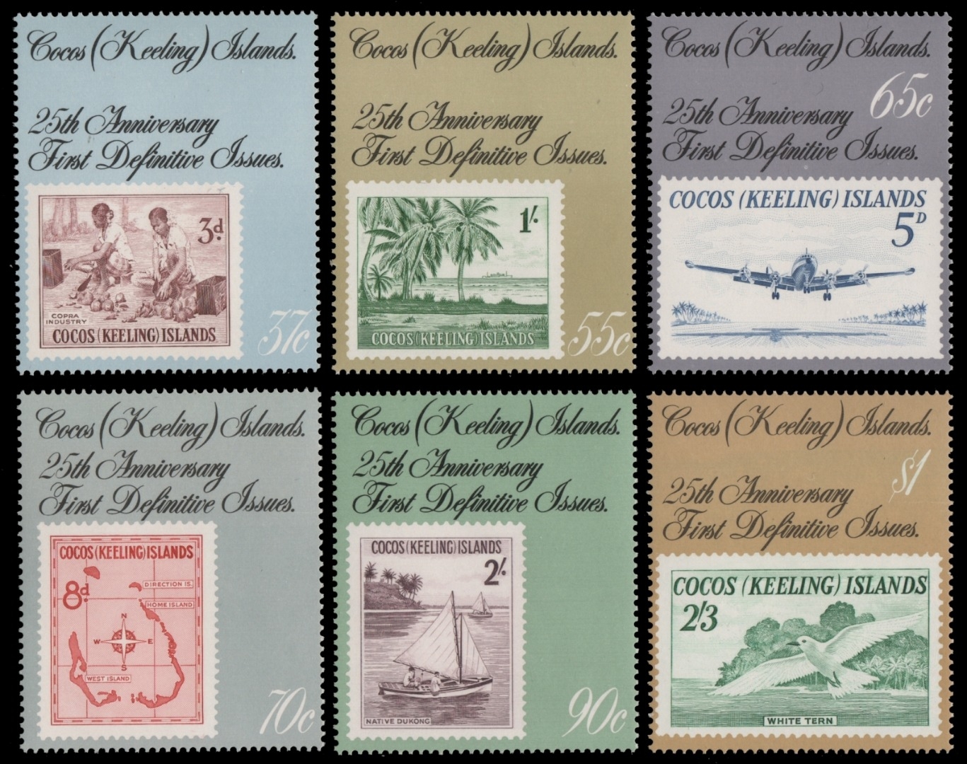 Kokos-Inseln 1988 - Mi-Nr. 192-197 ** - MNH - Marke auf Marke