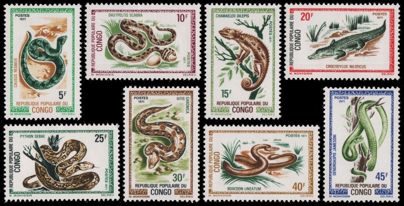 Kongo-Brazzaville 1971 - Mi-Nr. 291-298 ** - MNH - Reptilien / Reptiles