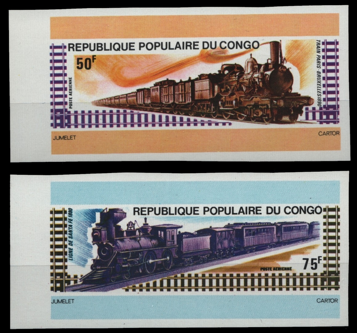 Kongo-Brazzaville 1975 - Mi-Nr. 460-461 B ** - MNH - ungezähnt / imp - Eisenbahn
