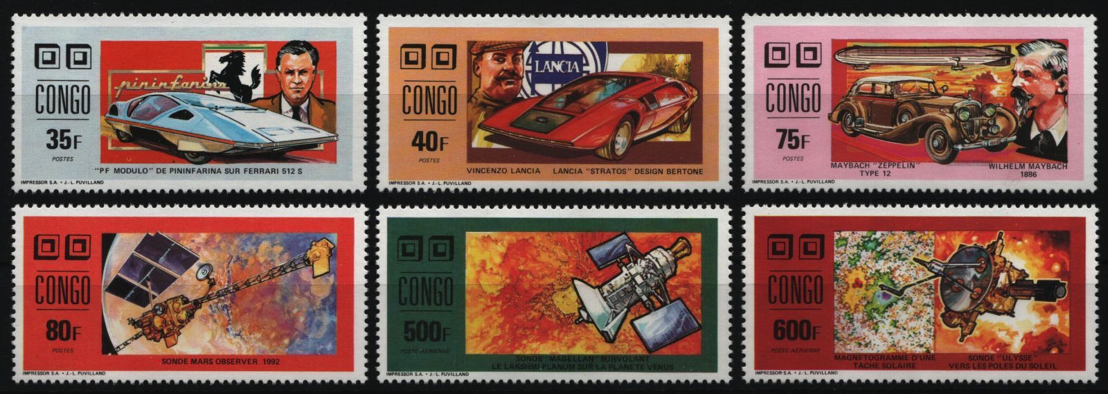 Kongo-Brazzaville 1991 - Mi-Nr. 1274-1279 A ** - MNH - Autos - Weltraum