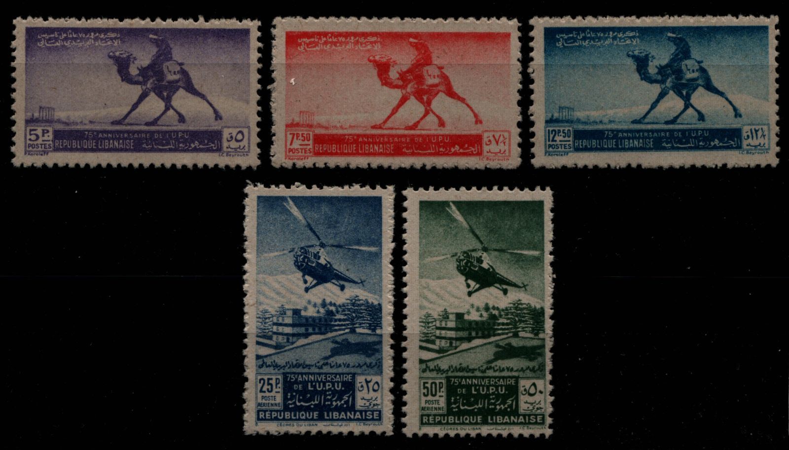 Libanon 1949 - Mi-Nr. 408-412 A ** - MNH - 75 Jahre UPU