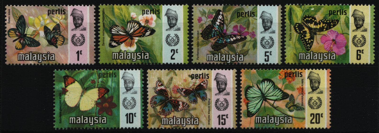 Malaya - Perlis 1971 - Mi-Nr. 47-53 I ** - MNH - Schmetterlinge / Butterflies