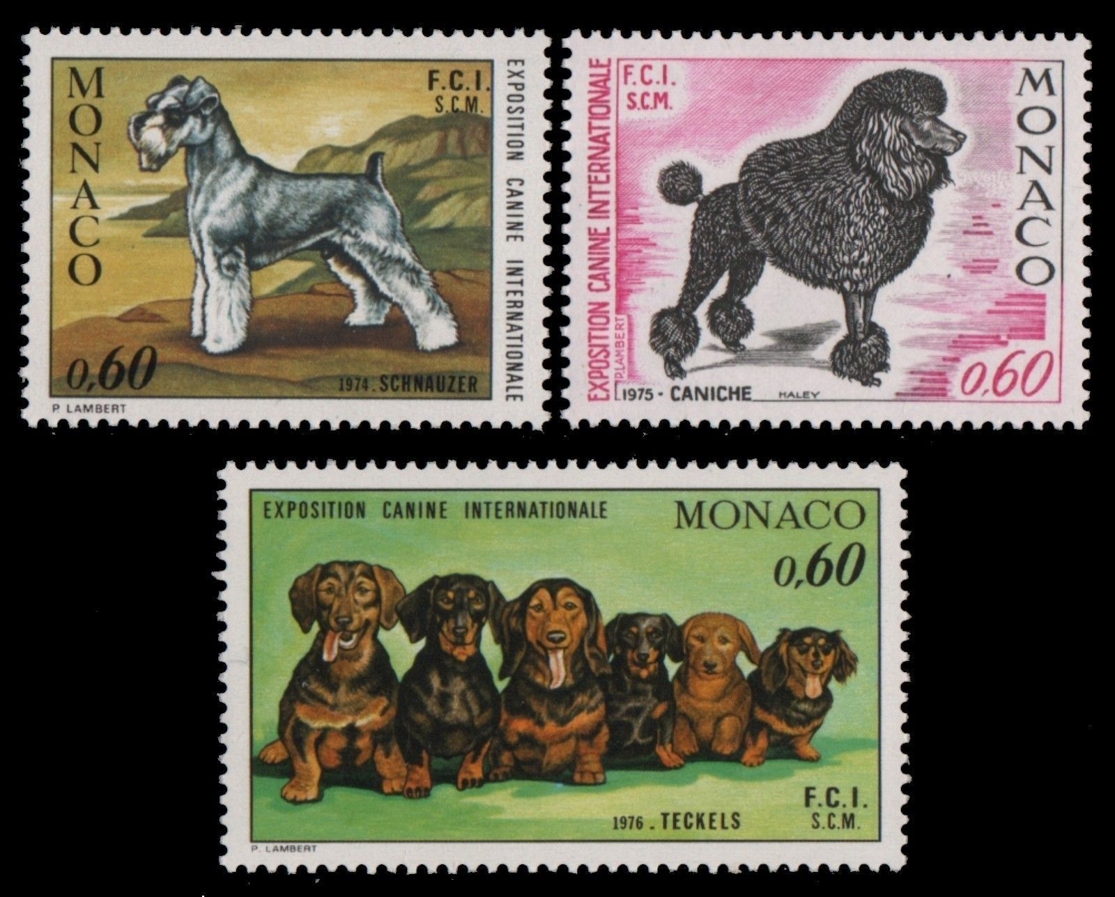 Monaco 1974-1976 - Mi-Nr. 3 komplette Ausgaben ** - MNH - Hunde / Dogs