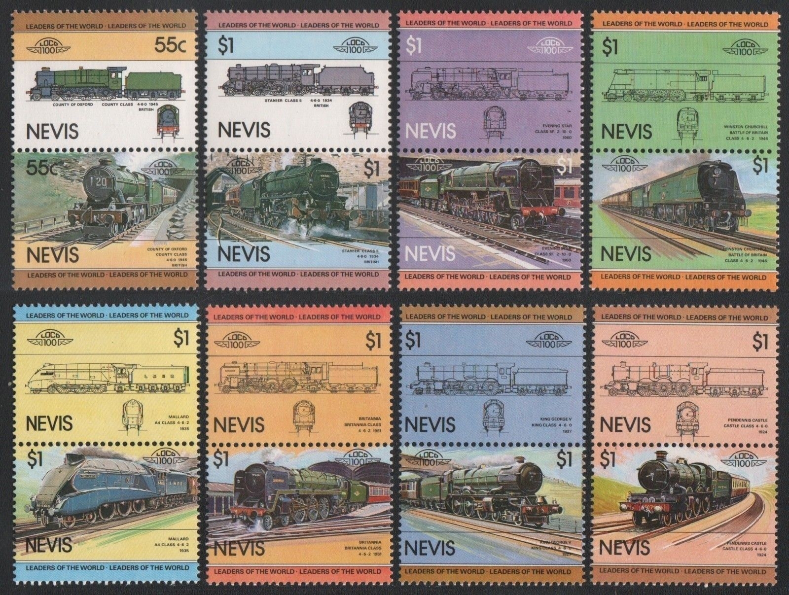 Nevis 1983 - Mi-Nr. 115-130 ** - MNH - Lokomotive / Locomotive