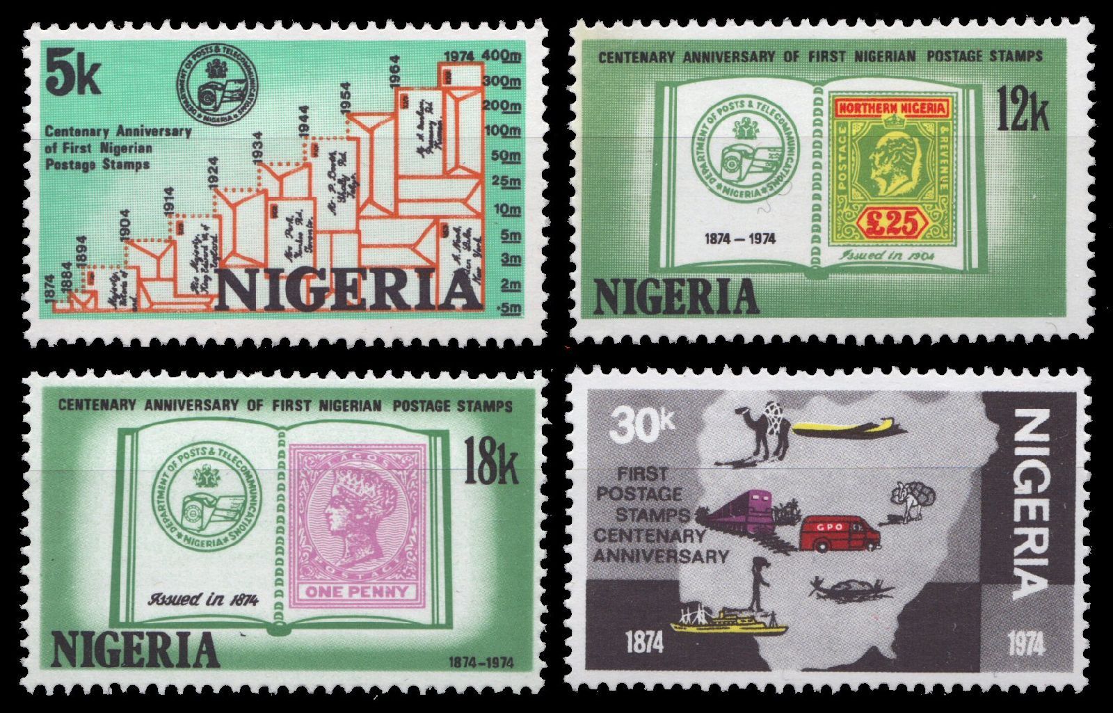 Nigeria 1974 - Mi-Nr. 300-303 ** - MNH - Marke auf Marke