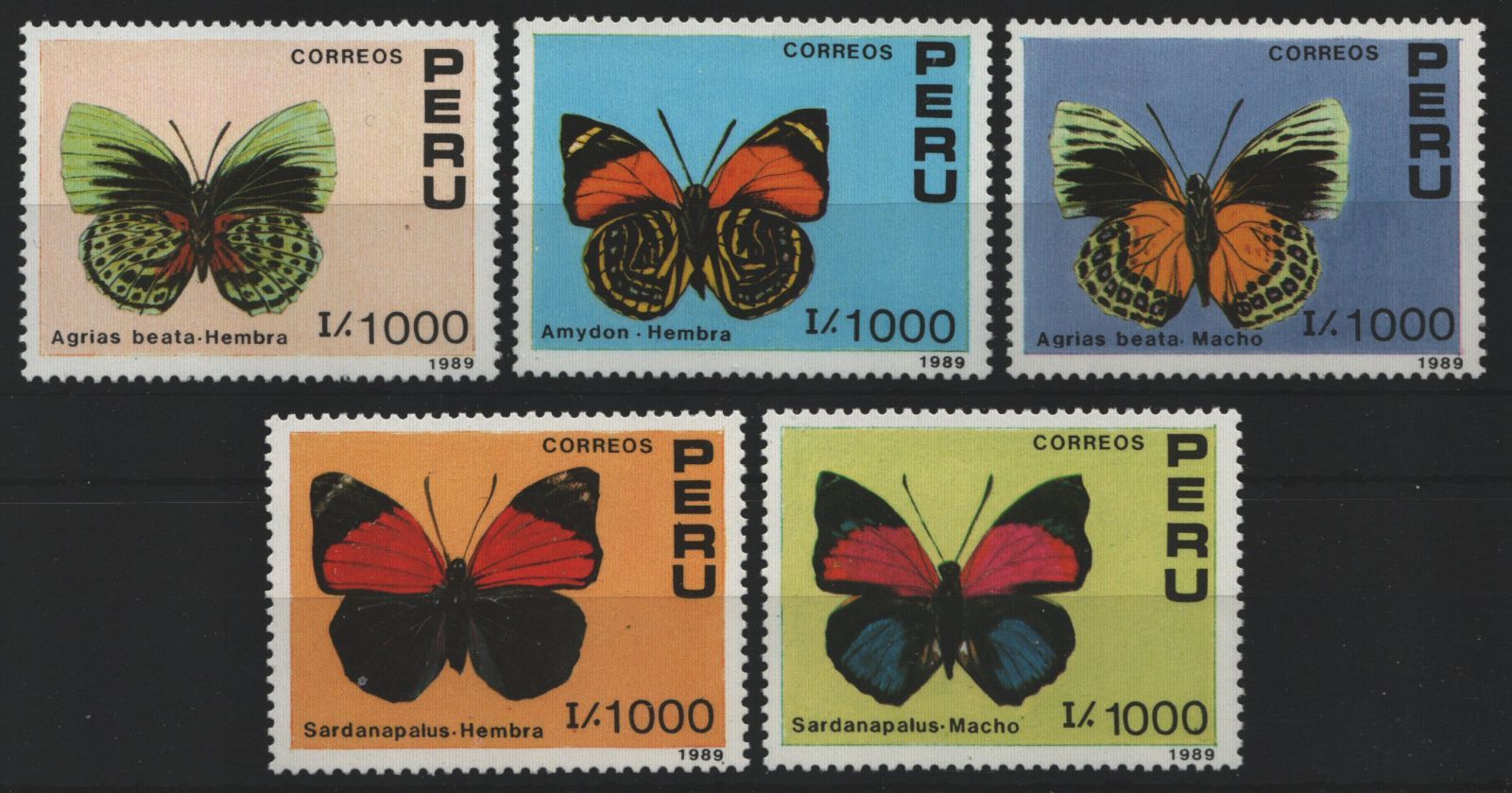 Peru 1990 - Mi-Nr. 1419-1423 ** - MNH - Schmetterlinge / Butterflies
