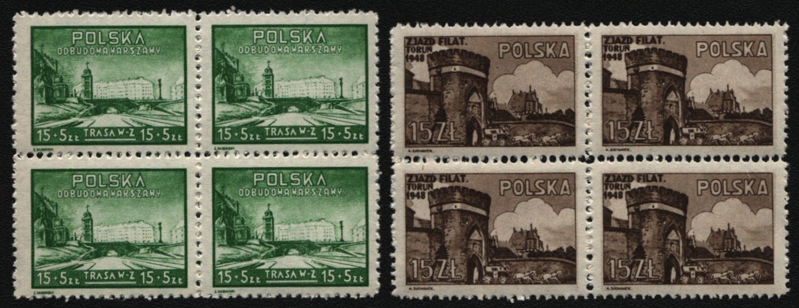 Einige Polnische Briefmarken-Ausgaben der Nachkriegsjahren sind meist auf minderwertigem Papier gedruckt.