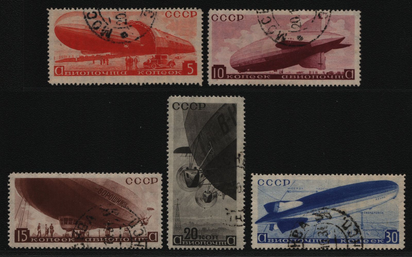 Russia / Sowjetunion 1934 - Mi-Nr. 483-487 gest / used - Luftschiffe (IV)