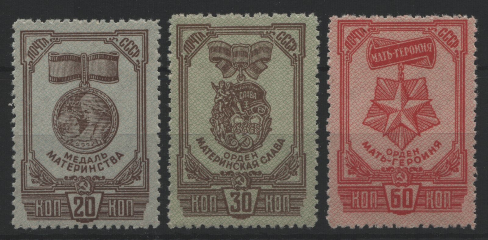 Russia / Sowjetunion 1945 - Mi-Nr. 968-970 A ** - MNH - Medaillen