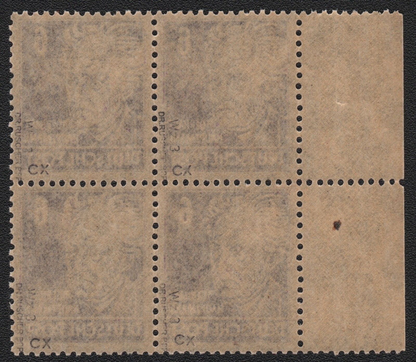Beschreibung: Bogenrand mit Papiereinschluß und Papierfalte