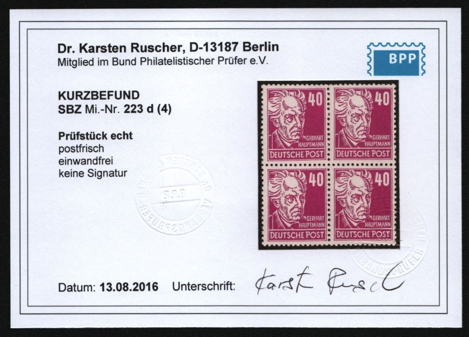 SBZ 1948 - Mi-Nr. 223 d ** - MNH - Viererblock - BPP geprüft