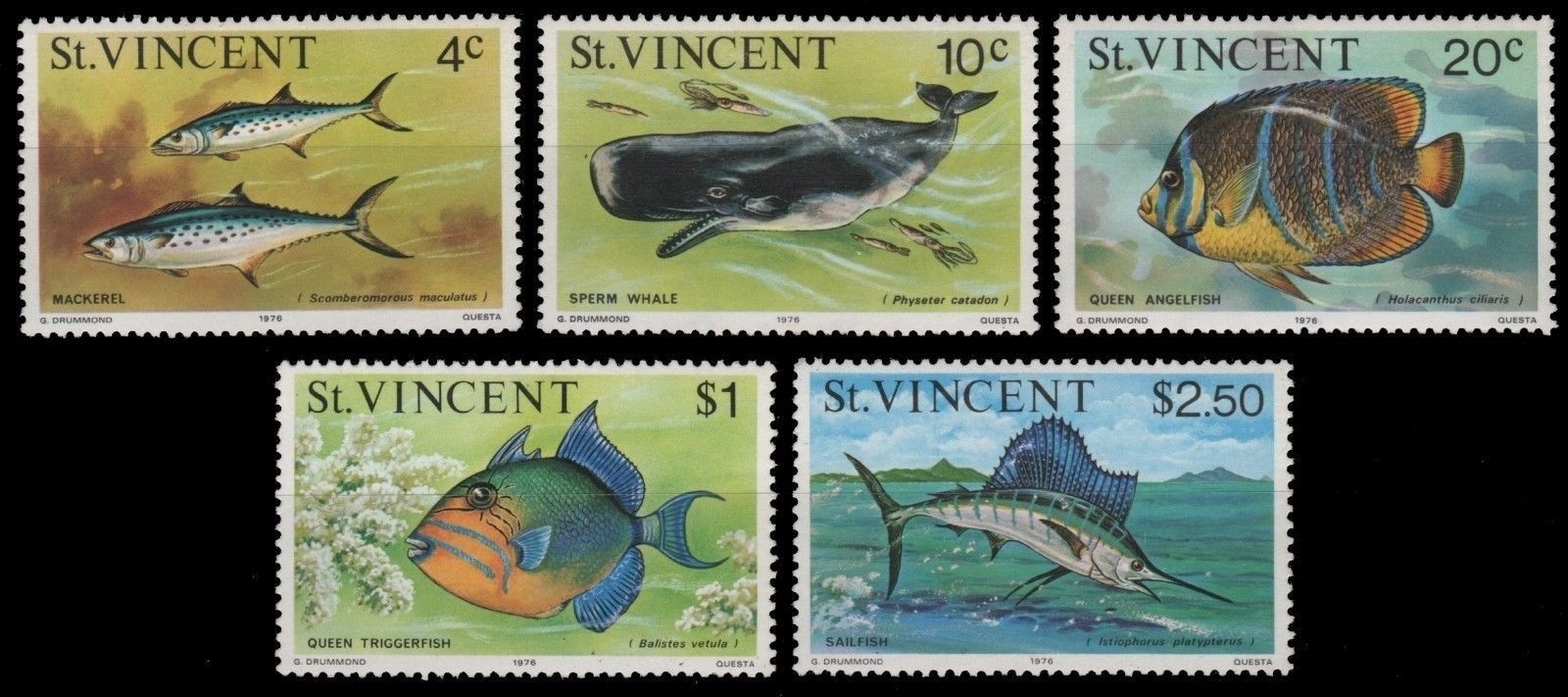 St. Vincent 1976 - Mi-Nr. 386-399 II ** - MNH - Fische / Fish