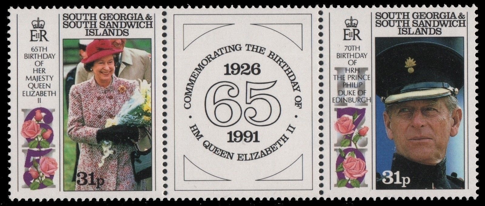 Süd-Georgien 1991 - Mi-Nr. 190-191 ** - MNH - 65. Geburtstag Queen (I)