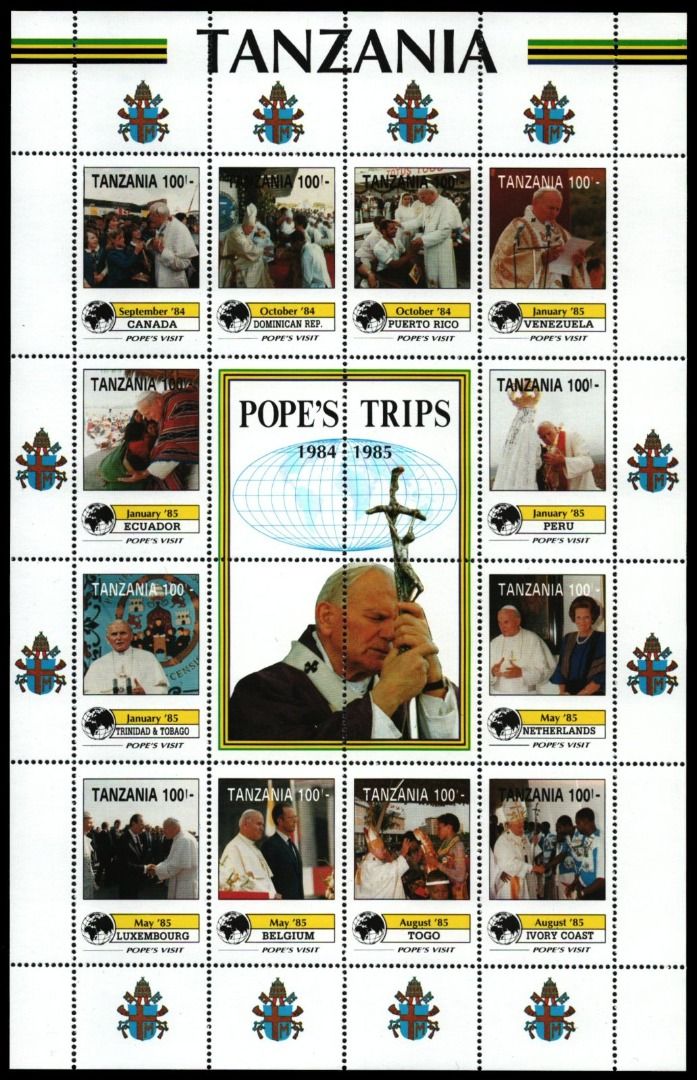 Tansania 1992 - Mi-Nr. 1146-1157 ** - MNH - Papst Johannes Paul II
