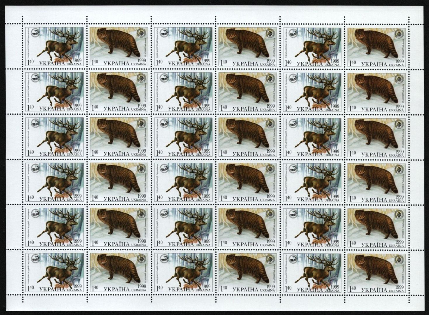 Ukraine 1999 - Mi-Nr. 321-322 ** - MNH - ZDR-Bogen - Wildtiere / Wild animals