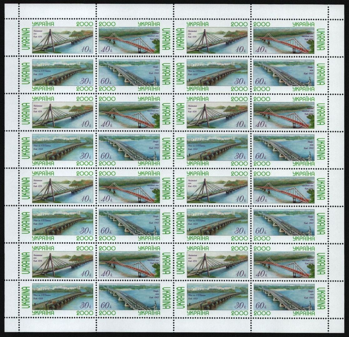 Ukraine 2000 - Mi-Nr. 356-359 ** - MNH - ZDR-Bogen - Brücken in Kiew
