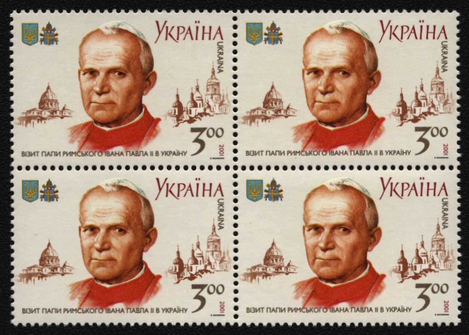 Ukraine 2001 - Mi-Nr. 454 ** - MNH - Viererblock - Papst Johannes Paul II