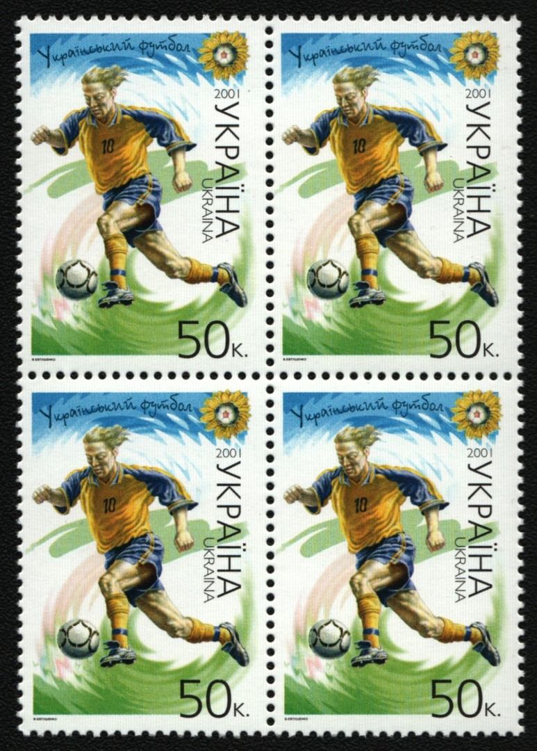 Ukraine 2001 - Mi-Nr. 462 ** - MNH - Viererblock - Fußball / Soccer