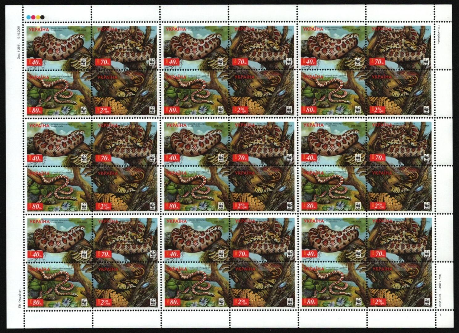 Ukraine 2002 - Mi-Nr. 502-505 A ** - MNH - ZDR-Bogen - Schlangen / Snakes