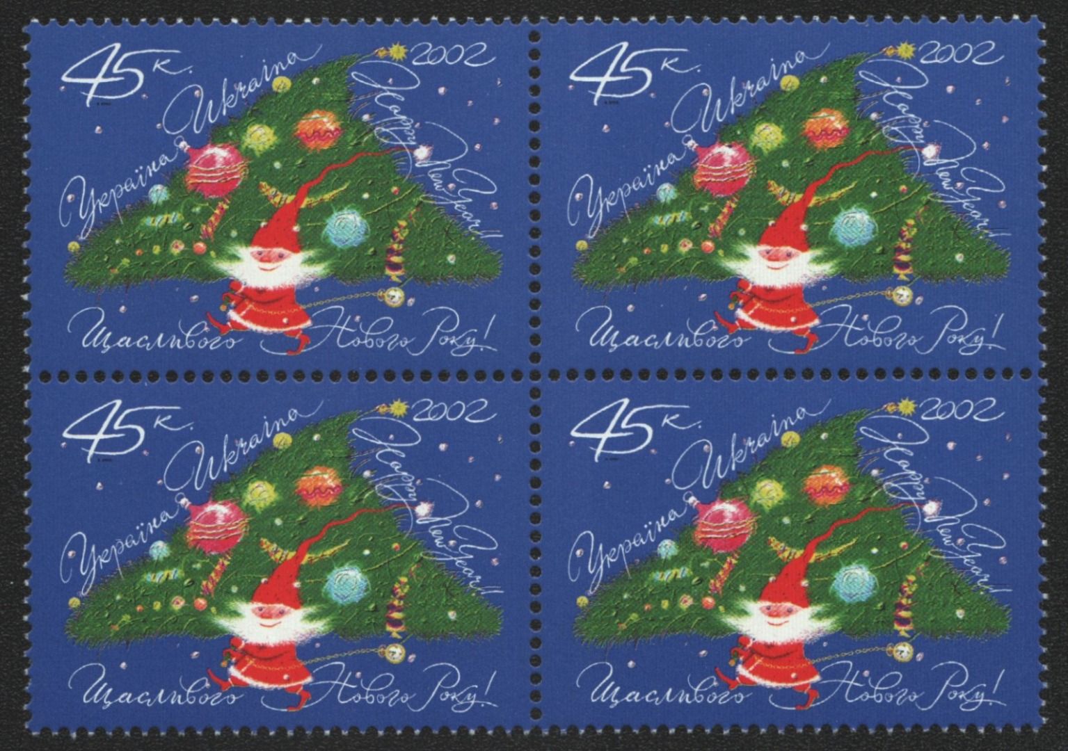 Ukraine 2002 - Mi-Nr. 541 ** - MNH - Viererblock - Weihnachten / X-mas