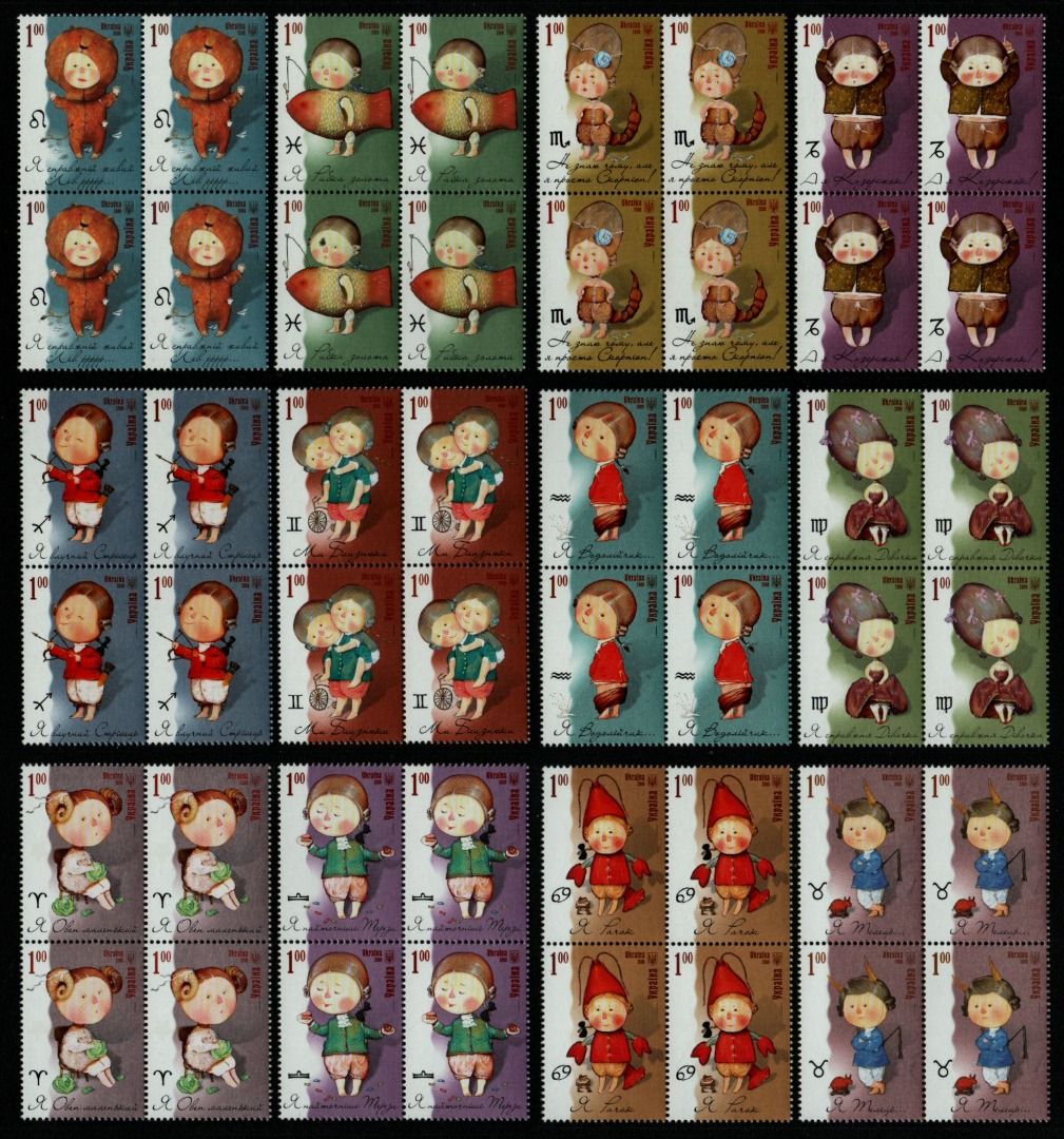 Ukraine 2008 - Mi-Nr. 924-935 ** - MNH - Viererblock - Tierkreiszeichen
