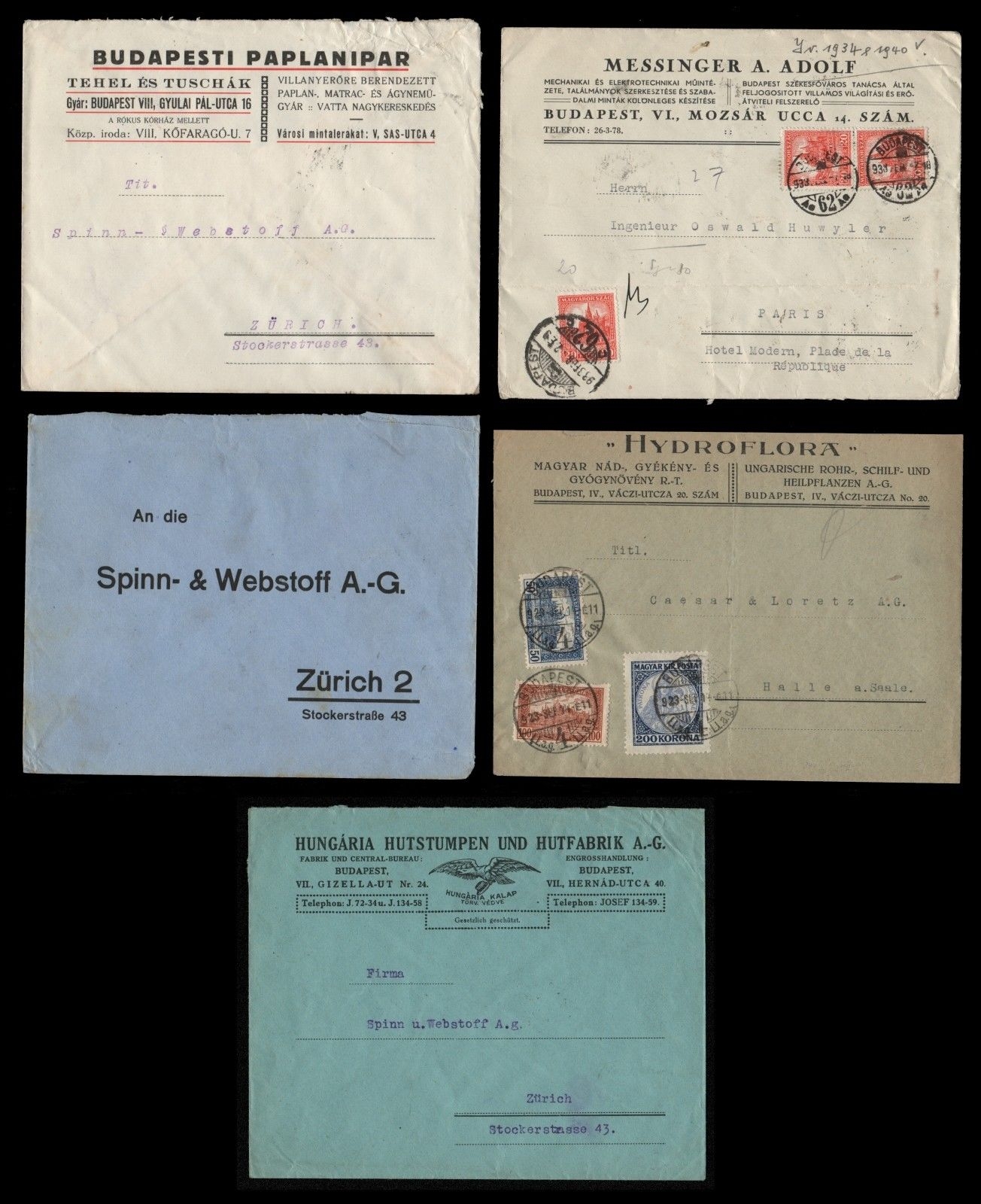 Ungarn - 5 x Briefe (1 x Zensur) - Ungarn nach CH, D & F