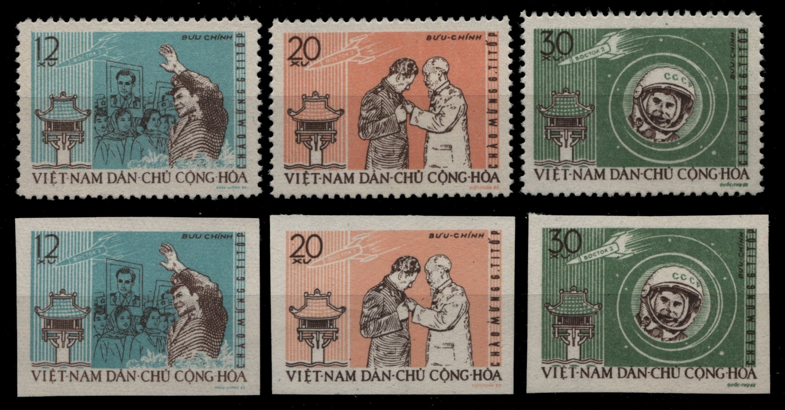 Vietnam 1962 - Mi-Nr. 217-219 & 217-219 U (*) - ohne Gummi verausgabt