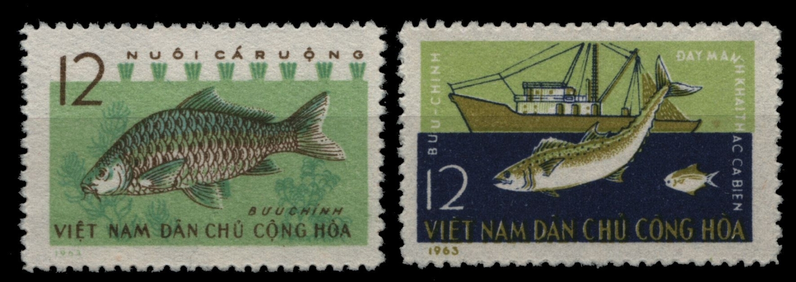 Vietnam 1963 - Mi-Nr. 262-263 (*) - ohne Gummi verausgabt - Fische / Fish